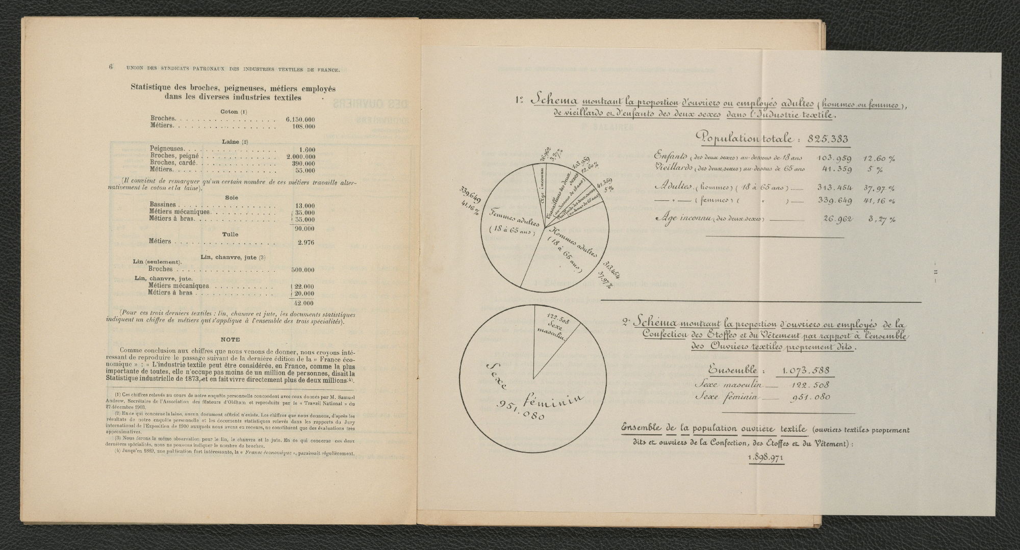 Pour l'industrie textile seule : 825 383 ouvriers dont 103 959 enfants et 339 649 femmes adultes