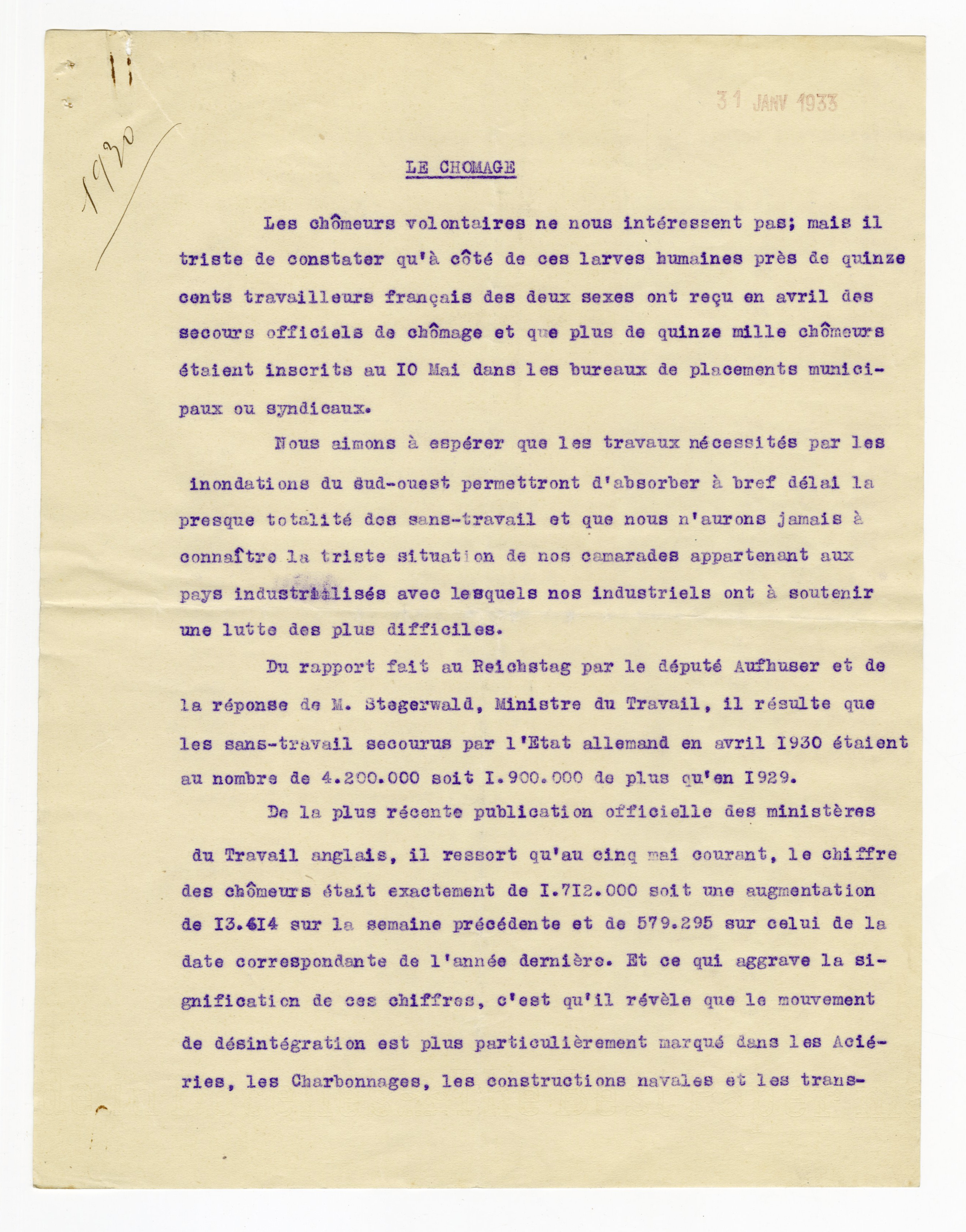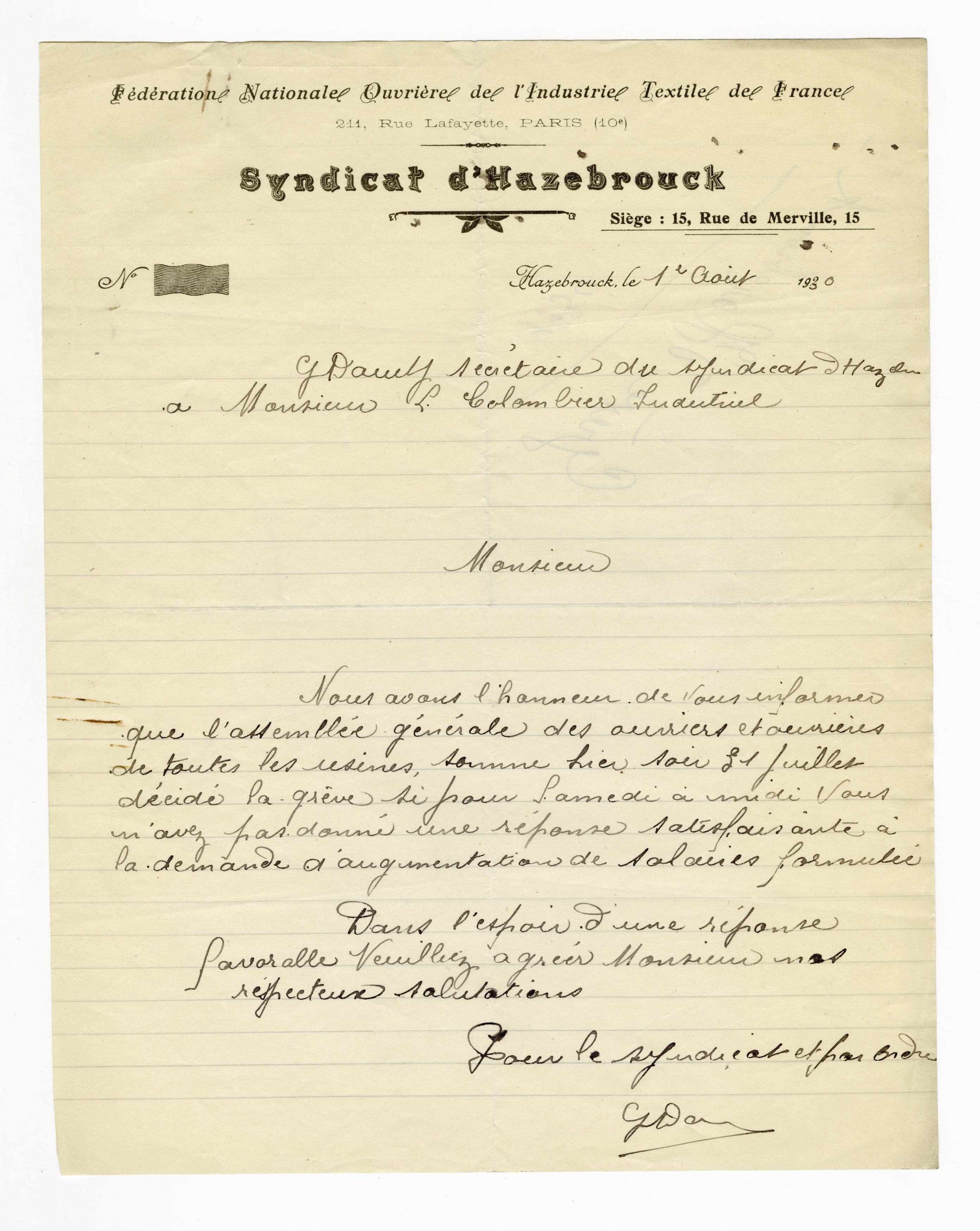 Les assurances sociales imposaient, moitié au patron, moitié à l’ouvrier, un versement de huit à dix pour cent sur les salaires. (…) Une hausse des salaires équivalente, soit cinq pour cent, était indispensable. Les syndicats unitaires, les ouvriers-chrétiens, tous les corps de métiers, se rangeaient à cet avis. On attendait seulement la décision du syndicat du textile pour déclarer la grève générale.