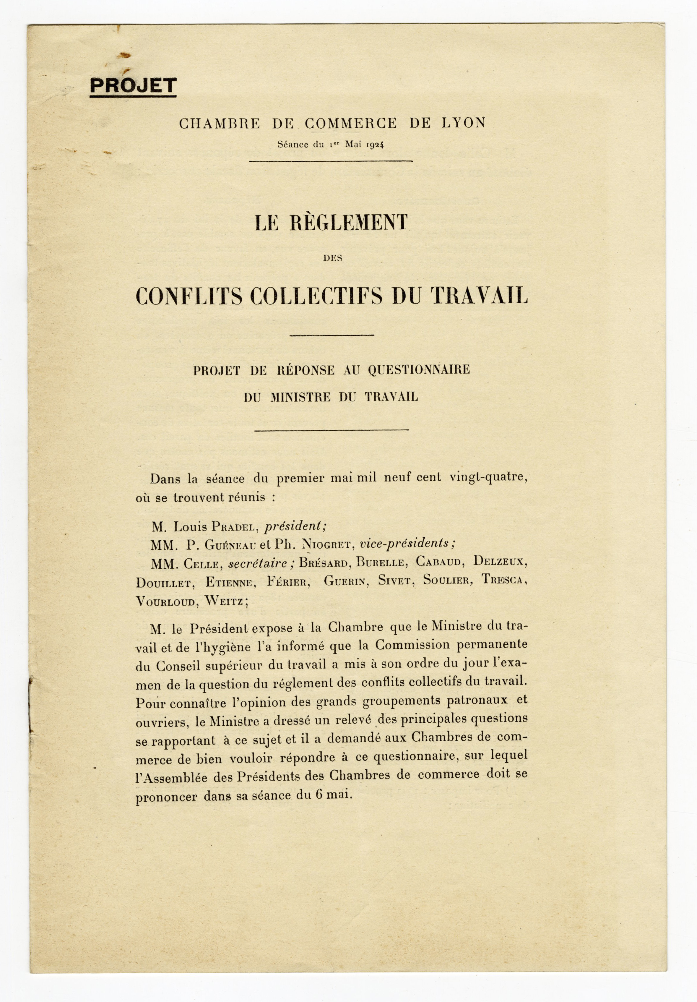 Projet de réponse de la chambre de commerce de Lyon, 1924