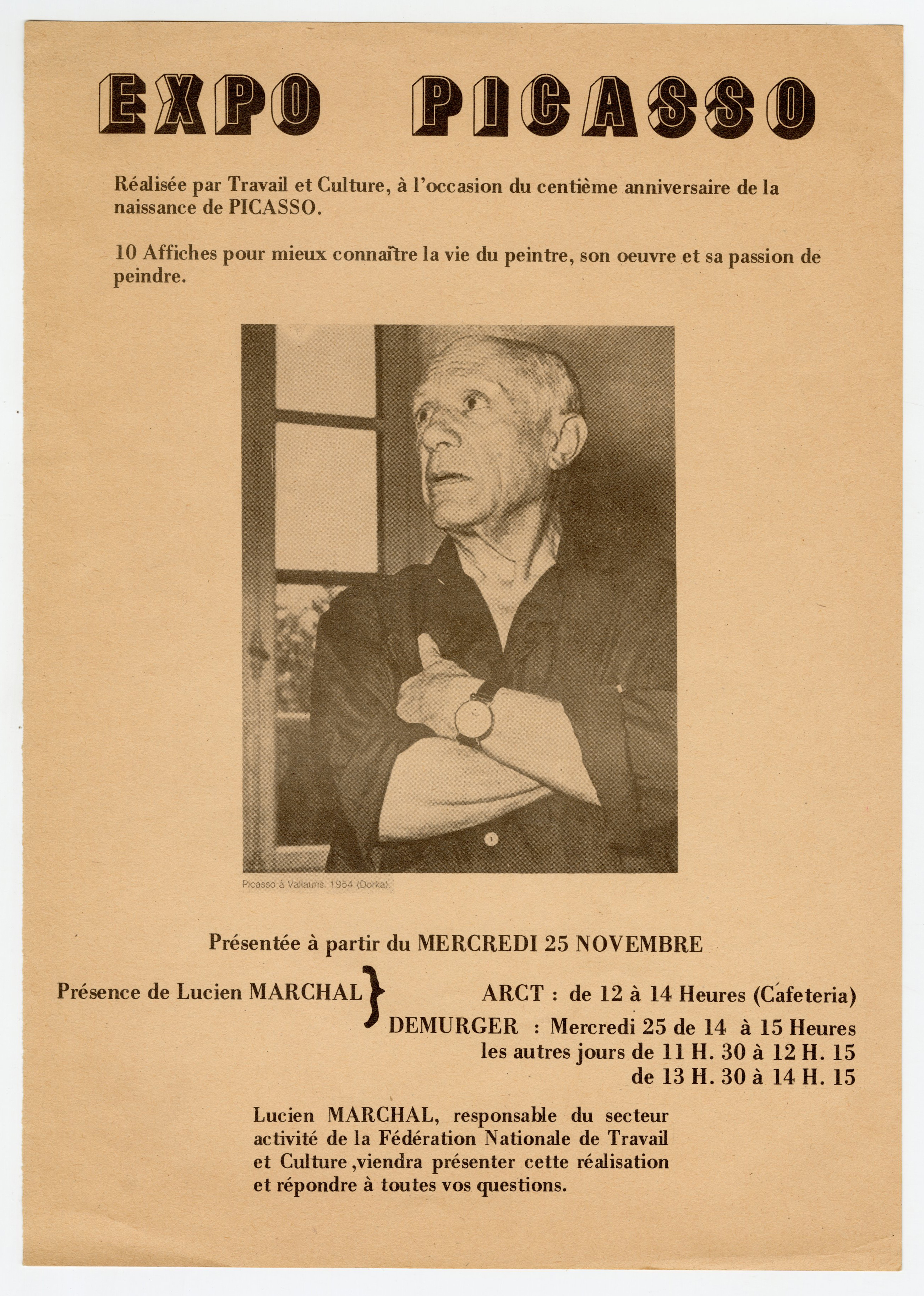 Tract de l’exposition Picasso organisé par Loisirs et culture, 1981.